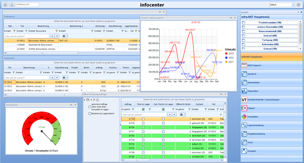 für den Betrieb des infra.infocenter ist infra:NET Version 7.7.1 und SQL 2012 (eingeschränkte Funktionalität auch mit Version < 2012). Eine freie Version des infra.infocenters ist in infra:NET Standard ab Version 7.9 integriert. Die Vollversion ist auf Anfrage bei der iN|ES GmbH erhältlich. Auf Ihr Unternehmen individuell angepasste Auswertungen sind hiermit durch den geschulten infra:NET-Anwender jederzeit erstellbar.