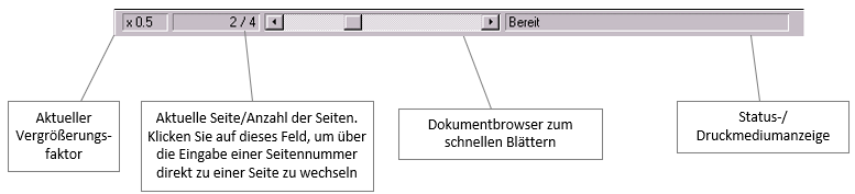 Die Zoomfunktion kann auch direkt im Preview-Fenster über die rechte und linke Maustaste aktiviert werden. Klicken Sie dazu mit der Maus direkt auf die angezeigte Dokumentseite. Die linke Maustaste aktiviert die Vergrößerung, die rechte Taste die Verkleinerung der Anzeige.