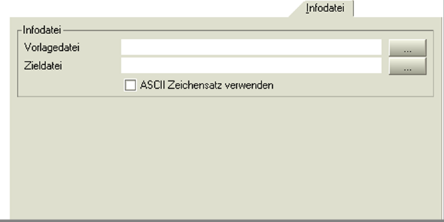 Die Markierung bestimmt, in welchem Zeichensatz die Infodatei gespeichert werden sollen. Allerdings betrifft die Angabe nur die Umwandlung der Daten, die aus den in der Vorlage enthaltenen infra-Makros erzeugt werden. Alle anderen Angaben aus der Vorlagedatei bleiben unverändert. Wird das Feld aktiviert, so findet die Ausgabe im DOS (ASCII)-Zeichensatz statt. Ansonsten wird der Standard-Windows (ISO)-Zeichensatz verwendet. Zweckmäßigerweise sollte das Ausgabeformat dem Format der Vorlagedatei entsprechen.