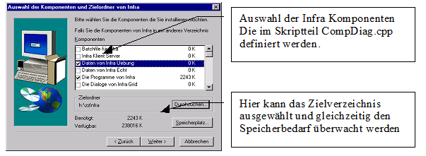 Die Skriptvaribale INFRAComponentsName visualisiert im Dialog Komponentenauswahl die Komponenten, denn ein Benutzer sollte z.B. nicht nach GRAFIK\*.* zum Auswählen gefragt werden, sondern z.B. nach Programme von infra.
