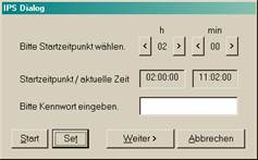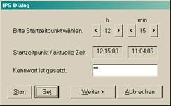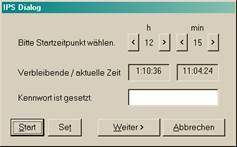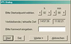 ![]() Nachdem der Startzeitpunkt mit der Settaste gesetzt wurde, drücken Sie bitte auf die Starttaste. Im Dialog wird nun im Anzeigefeld neben der aktuellen Zeit die Dauer angezeigt, die noch verbleibt bis das Setup weitergeführt wird. Diese Unterbrechungszeitdauer wird nun dauert aktualisiert.