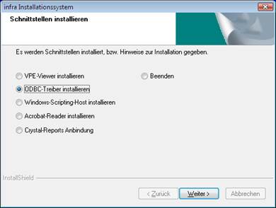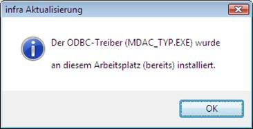 1.3.2 ODBC-Treiber installieren Die Installation erfolgt durch den Start von Mdac_typ.exe aus ..\INFRA\ZUSATZ\ODBC\ Die erfolgreiche Einrichtung wird gemeldet, wobei spätestens seit Windows XP diese Treiber zum Windows-Standard gehören.