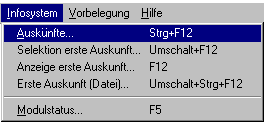 Unter dem Eintrag INFOSYSTEM in der Menüleiste nahezu aller infra-Dialoge befinden sich die Menüs zum Starten von infra:query: