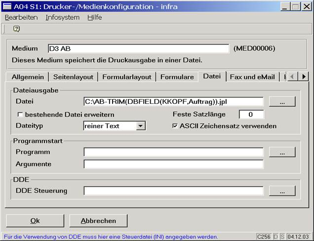 2.4.2 Einrichtung der Druckermedien für die Steuerdatei (*.jpl)