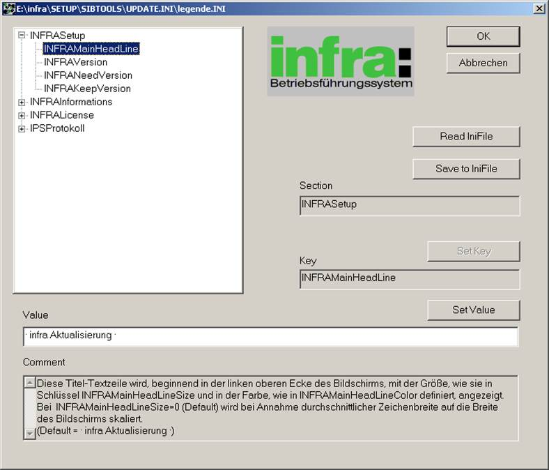Die Datei, die als Wert diesem Schlüssel mitgegeben wird, steht nach der Installation im infra-Hauptverzeichnis. (Default=INFRA.ISU)