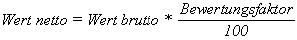 Hier kann der Bewertungsfaktor für die Inventurbewertung bearbeitet werden. Eine Eingabe von über 100% bedeutet einen Zuschlag. Eine Eingabe von unter 100% bedeutet einen Abschlag. Die Formel lautet: