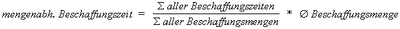 Die durchschnittliche mengenabhängige Beschaffungszeit wird etwas anders berechnet als die durchschnittliche mengenunabhängige Beschaffungszeit.