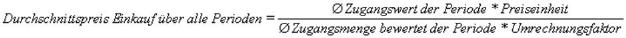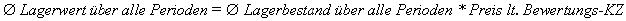 Für die Berechnung des Durchschnittslagerwerts über alle Perioden gilt folgende Formel: