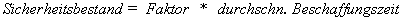 FaktorDie Variable "Faktor" wird parallel mit zwei Formeln berechnet. Sobald der mit der ersten Formel errechnete Wert kleiner ist als der mit der zweiten Formel berechnete, wird der mit der ersten Formel berechnete Wert für die Berechnung des Sicherheitsbestands verwendet.