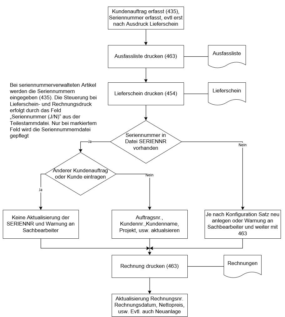 Ablaufdiagramm der Seriennummernverwaltung im Bereich Verkauf