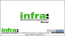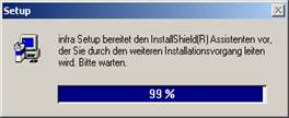 Die Fortschrittsanzeige wird gemäß Sprachkennzeichen aus dem Betriebssystem, aus _SETUP.DLL aus dem Unterverzeichnisse von SETUPDIR, dessen Namen dem Ländercode entspricht, erzeugt. Wenn in diesem Verzeichnis auch eine infra-Bitmap existiert (im Standard nur in Deutsch), wird diese ebenfalls angezeigt.
