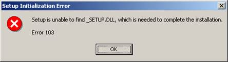 Wenn hier bereits eine Fehlermeldung kommt, ist die Struktur des SETUP verloren gegangen, oder es fehlen wichtige Runtimes, oder es gibt einen undefinierbaren Mix von SETUP-Bestandteilen im temporären Windows-Verzeichnis: