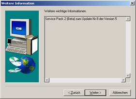 In diesem Fenster wird der Inhalt einer ASCII-Datei angezeigt, deren Pfad und Namen in der INFUPD.INI unter [INFRAInformations], INFRAInfoTextDir eingetragen ist (z.B. INFRAInfoTextDir=..\SETUPDIR\SIBTEXT\INFO.TXT). Wenn diese Datei nicht existiert, wird ein leeres Fenster angezeigt, mit dem Eintrag ‚NULL’ wird das Fenster unterdrückt.