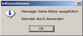 · Der Button ‚Ohne Aktion beenden’ wird immer angezeigt, bei Betätigung muss folgende Meldung angezeigt werden: