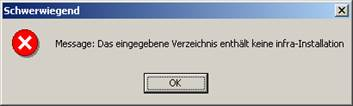 Wenn ein Verzeichnis eingegeben wird, das nicht existiert, kann dies im Dialog neu erstellt werden (Nur sinnvoll bei Neuinstallationen). Ein existierendes Verzeichnis wird überprüft, ob es infra:NET enthält.