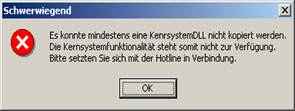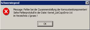 Im infra-(root)Verzeichnis gibt es im Fehlerfall eine Datei Kernel_ListCopyError.txt, in der die fehlenden Kernsystembestandteile (auch DLLs der Virtual PrintEngine und C-Runtimes MSVC*.DLL) aufgelistet sind. Die Dateien Kernel_ListCopyError.txt, Kernel_ListCopy.txt und InfraSTPPreparation.txt werden vom SETUP automatisch ins infra-Hauptverzeichnis kopiert, und können dort ausgewertet werden. Das Problem kann meist behoben werden, wenn entweder die LOADSRC.INI bearbeitet, oder falsche oder fehlende Dateien ins Verzeichnis INST des SETUP ins entsprechende Unterverzeichnis kopiert werden. Im Zweifelsfall diese *.txt an die Hotline mailen!