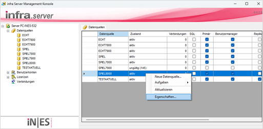 In infra:NET selbst sind zunächst noch keine Anpassungen für SQLpur notwendig – d.h. infra:NET kann sowohl mit einer nativen infra-Datenquelle als auch mit SQLpur arbeiten – alles über den gleichen infra:NET Serverdienst.