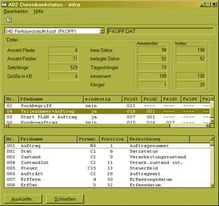 Angaben zu den Tabellen können aus dem infra-Datenbankstatus entnommen werden.