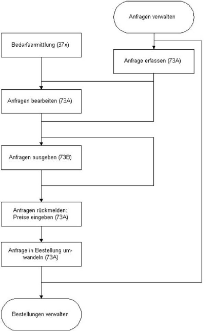 Aus der günstigsten rückgemeldeten Anfrageposition kann eine Bestellung erzeugt werden. Beim Erzeugen der Bestellung wird die gesamte Anfrage gelöscht. Die Anfragenummer erscheint als Suchbegriff in der Bestellung.