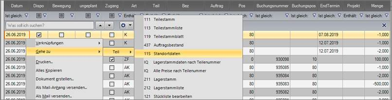 Mit Doppelklick auf eine Zeile wird in den entsprechenden Teilestamm nach PDV111 gewechselt.