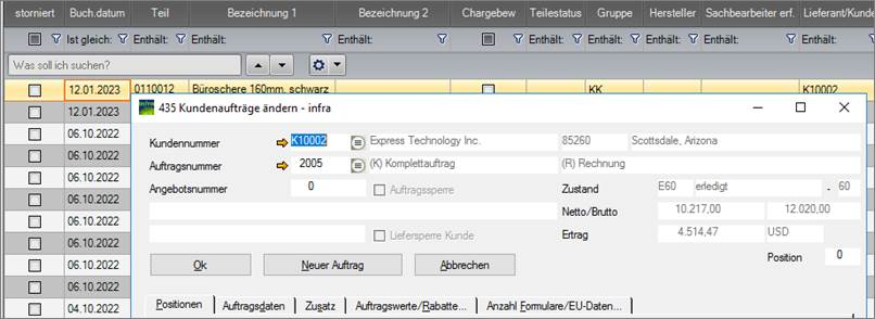 Mit Doppelklick auf eine Zeile wird in den entsprechenden Kundenauftrag nach AUF435 gewechselt.