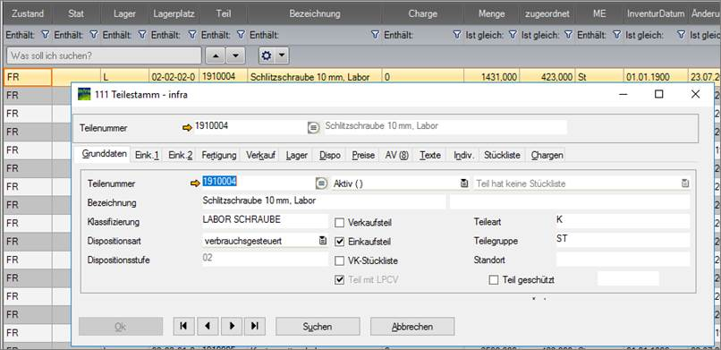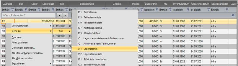 Mit Doppelklick auf eine Zeile wird in den entsprechenden Teilestamm nach PDV111 gewechselt.