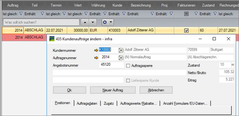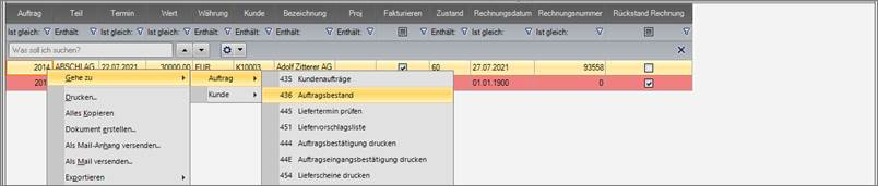 Mit Doppelklick auf eine Zeile wird in den entsprechenden Kundenauftrag nach AUF435 gewechselt.