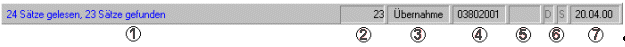 Hier wird angezeigt, ob Ergebnisse aus der aktuellen Abfrage in das rufende Eingabefeld oder das rufende Programm übernommen werden können (Übernahme) oder nicht (Anzeige). Unabhängig davon kann auch aus allen anderen Abfragen jedes Spaltenelement übernommen werden (siehe 071.031 Übernahme in Dialogfeld aus Auskunft).
