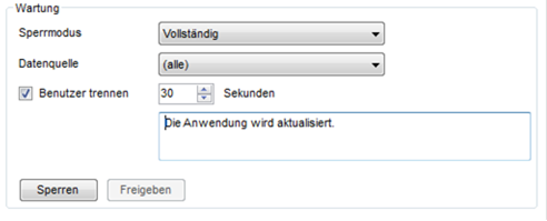 Bei Auswahl der Datenquelle „(alle)“ gilt der Sperrmodus für den gesamten Server, ansonsten nur für die jeweils ausgewählte Datenquelle.