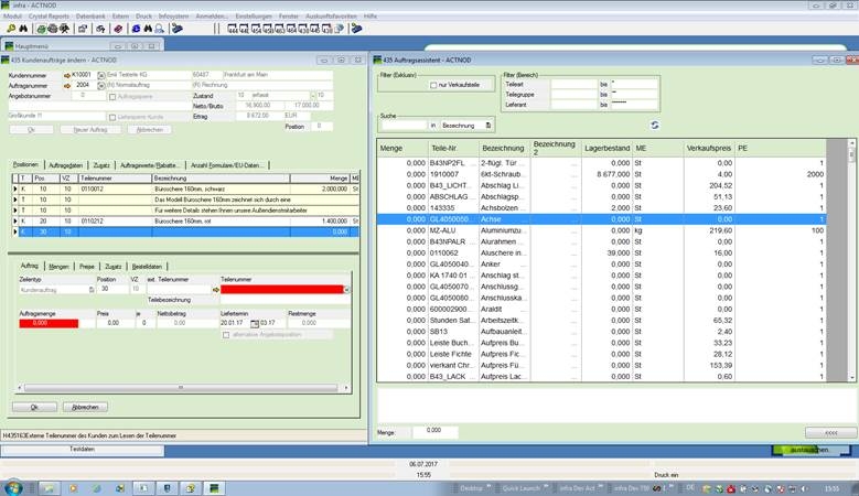 Über den Order-Management-Assistenten (OMA) kann schnell und komfortabel ausgewählt werden, welche Kundenauftragspositionen in eine Ausfassliste übernommen werden sollen.