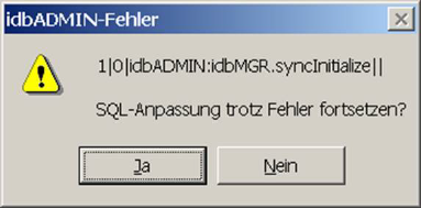 Fehlermeldungen aus der Active-X-Komponente IDBADMIN (siehe nachfolgendes Beispiel und eigenes Fehlerkapitel dazu) resultieren meist aus einer fehlerhaften Verbindung zur SQL-Datenbank (siehe Feld «Verbindungsangaben zur SQL-Datenbank»).